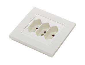 Trippel Eurovägguttag i ELKO Plus design. Praktiskt vägguttag vid TV eller stereoanläggning i ram med flera vägguttag. Kan monteras separat i väggbox, eller tilllsammans med andra vägguttag i samma ram.
