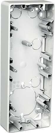 3-facksdosa 35mm för utv montage, nyckelhål för montage över apparatdosa c/c 60mm. Utbrytningar i bottendel, möjligheter till att montera dragavlastning och skiljevägg. Separat bottendel och förhöjningsram förenklar installationen.