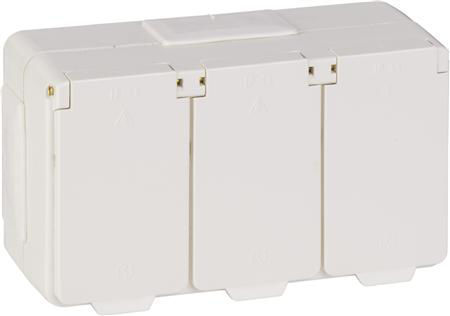 Jordade, petskyddade vägguttag för utanpåliggande IP44-montage. Med två membrannipplar. Skruvanslutning. Uttagen har två neutrala överkopplingsklämmor integrerade i kapslingen. Godkänd enligt försäkringsbolagens krav på installation i lantbruk. Plasten har mycket bra egenskaper gentemot vegetabiliska oljor och ammoniak.